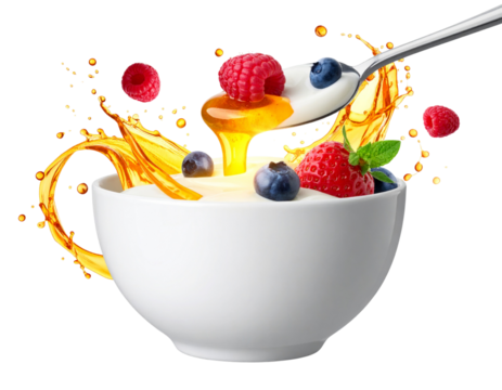 PNG Cornflakes in milk splashing from white bowl with floating flakes