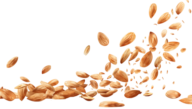 almonds floating png, wooden bowl with almonds, nut food png, dry fruit png, healthy snack png, almond splash png, isolated food image, edible item png, food stock png, transparent background