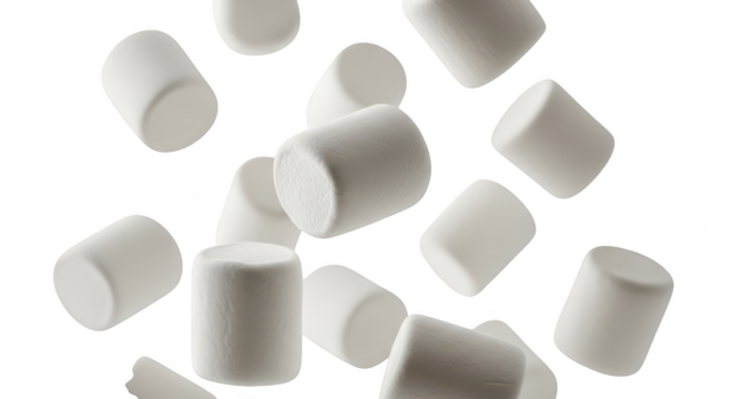 Fluffy Marshmallows Floating Upwards, Isolated on Transparent Background