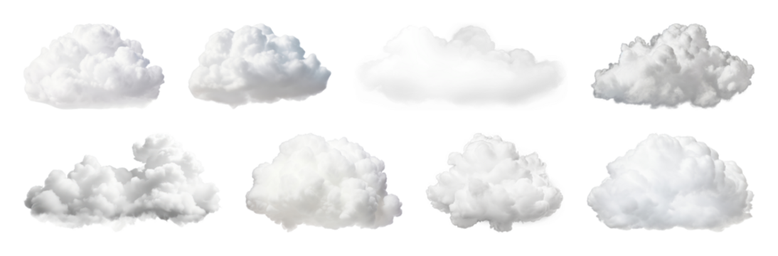 Single puffy white cloud isolated on transparent background, perfect for design elements or weather concepts
