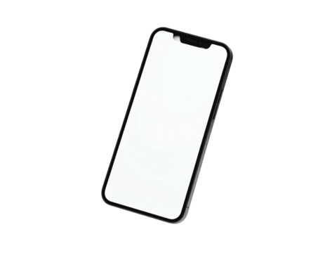 A sleek, modern smartphone levitates, showing a blank white screen, on a black backdrop