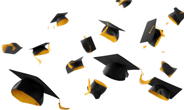 Graduation caps floating in the air on transparent background png