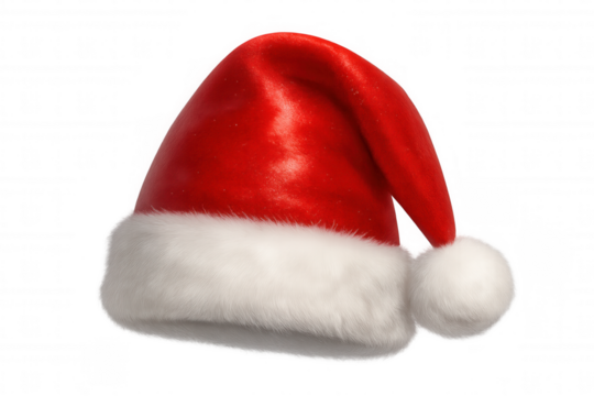 Red and white santa claus hat floating on a transparent background, perfect for christmas projects
