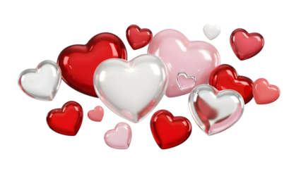 Floating pink 3d heart icons on transparent background