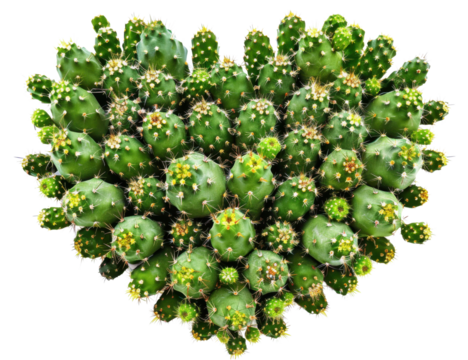 Cactus Heart: An enchanting heart shape crafted from vibrant green cacti, isolated on transparent  or white background, png, showcasing the beauty of botanical artistry and natural design.