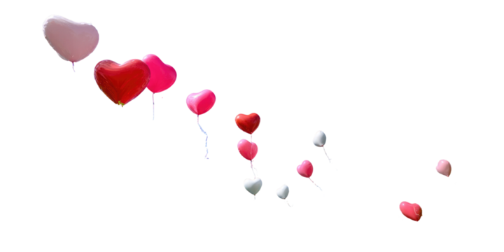 Heart Shaped Balloons Floating Against Bright Blue Sky on Transparent Background