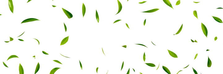 Dynamic green tea leaves floating in air nature high-quality creative concept isolated on transparent background