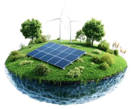 Floating community solar dashboard visualizing neighborhood energy generation, isolated, PNG format, transparent background. Varient 4