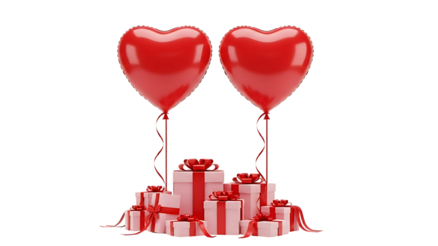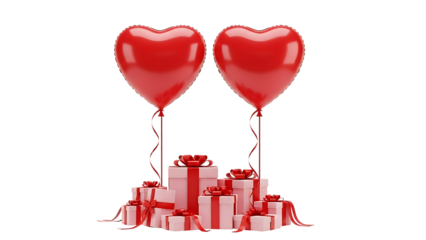 Red gift boxes floating on transparent background