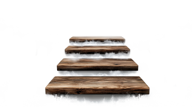 Wooden stairs floating on transparent background