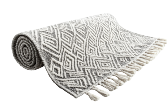 Isolated Rolled Gray and White Geometric Rug