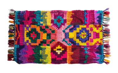 Isolated rug, a beige woven jute fiber floor mat, for interior design, decoration, and home furnishing concepts on white and transparent background