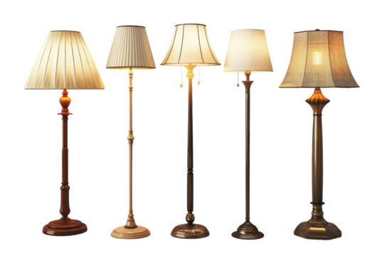 A cluster of diverse lamps stand side by side, casting a warm glow in a harmonious arrangement