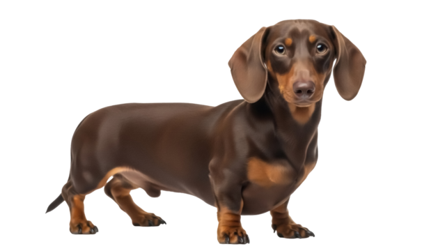 Adorable brown dachshund dog PNG isolated on transparent background, cute pet with short legs and floppy ears for design projects