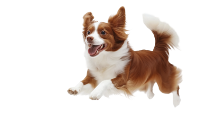 Spaniel puppy dog playing on a white background or transparent png , with floppy ears and a joyful expression.
