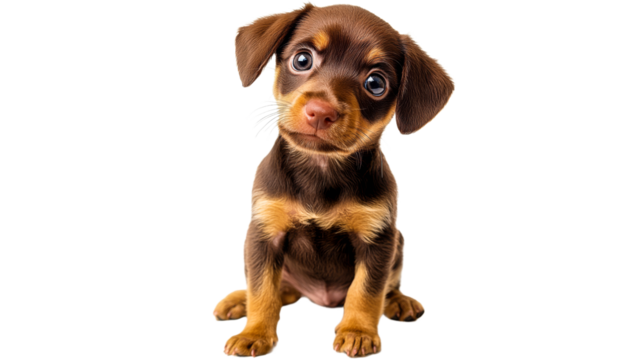 Cute brown puppy sitting on a white background