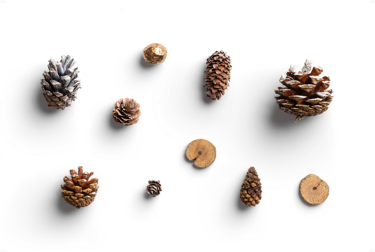 Set of Winter Decor Elements with Pinecones Wood Cut Gold