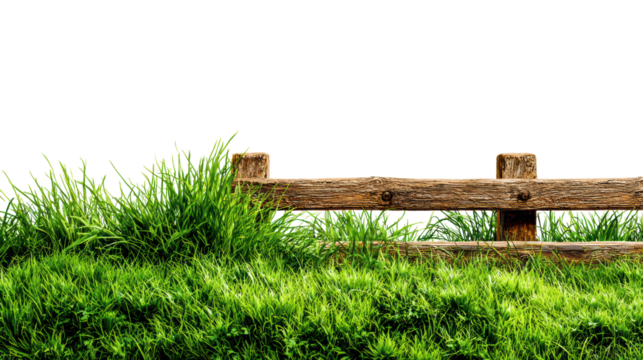 Wooden fence surrounded by lush green grass on a white isolated background.