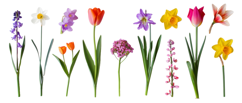 Set of isolated, tulips on transparent background. elements, themed designs. Top view high quality PNG." design elements, top view / flat lay.