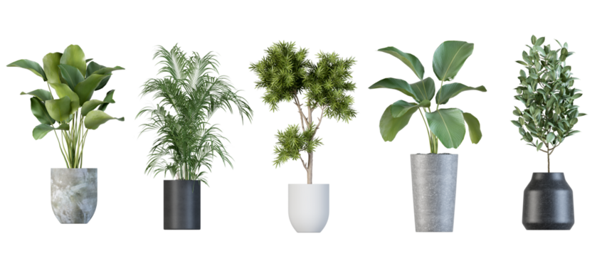 Big Green Fresh Houseplants Set. Interior Design Mockup. Front View. Ai Generative