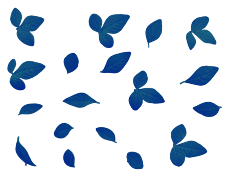 Dark Blue Scattered Leaves and Foliage - Isolated on Transparent Background
