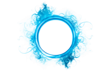 Blue circular frame with abstract smoke effect isolated on a transparent background