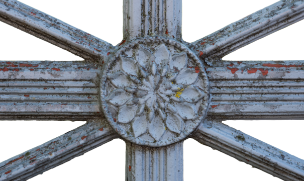 Weathered ornamental metal detail with floral pattern