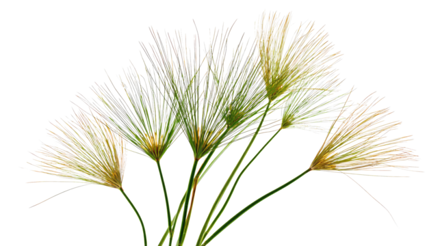Four green grass tufts isolated on transparent background for design and decoration purposes