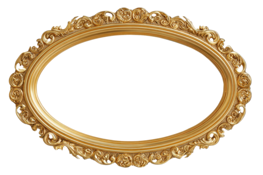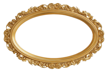 Ornate antique gold oval picture frame with floral isolated on a transparent background