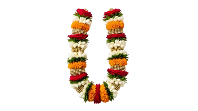 Orange marigold flowers arranged in a U shape isolated on a transparent background floral arrangement