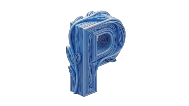 Blue Paper Letter P with Leaves on White Background