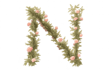 Transparent floral letter i with watercolor bloom and eucalyptus