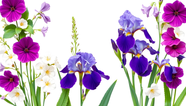 Vibrant floral bouquet with sunflowers and blue blooms on transparent
