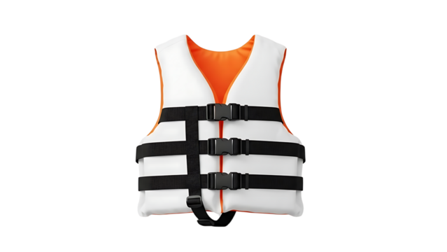 Isolated Life Jacket Orange Safety Vest for Water Rescue in Transparent Background