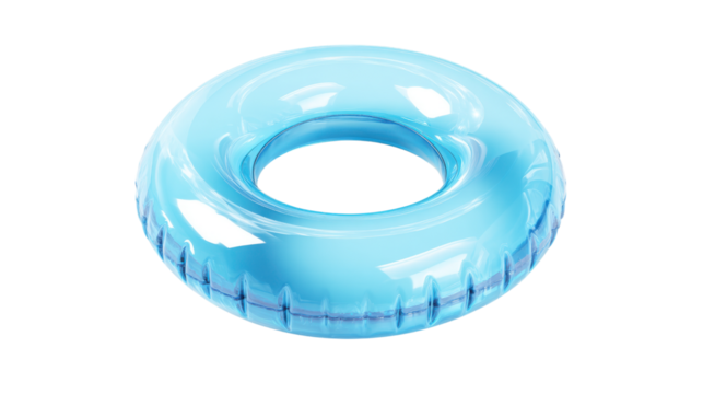 Blue Inflatable Pool Ring Floating Device on Transparent Background