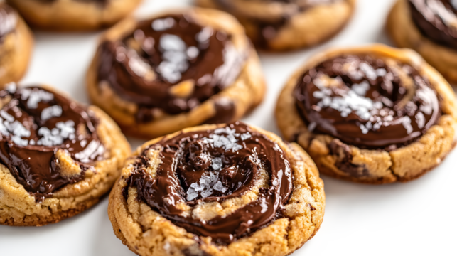 A row of chocolate covered cookies with salt sprinkled on top