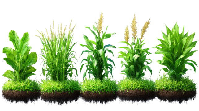 Top view of a flourishing green bush with white flowers, isolated with a transparent background
