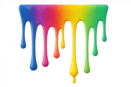 Rainbow paint dripping liquid flow on transparent background