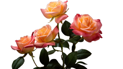 Decorative flower and leaves on transparent background