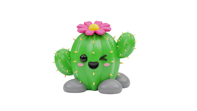 Whimsical cartoon flower character on transparent background
