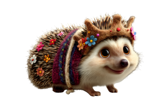 Llama wearing colorful flower crown and vibrant shawl isolated on white or transparent PNG
