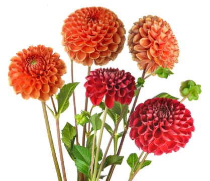 Orange and yellow flower cluster with green leaves isolated on transparent background