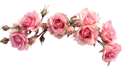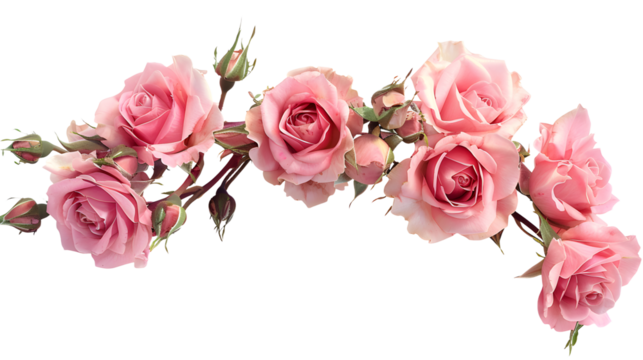 Small pink rose flowers in a floral arrangement isolated on white or transparent background
