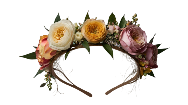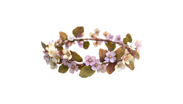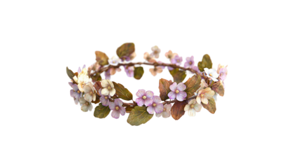 set of floral crowns, each crafted from wildflowers and lush foliage, isolated on transparent background