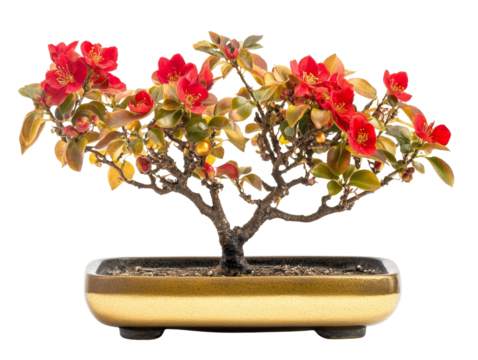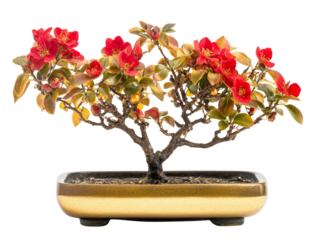 Red flower with green leaves on transparent background