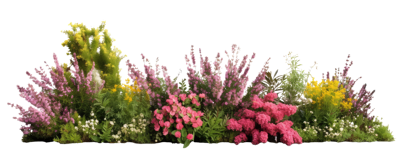 Flowering shrubs and greenery in garden isolated on transparent background