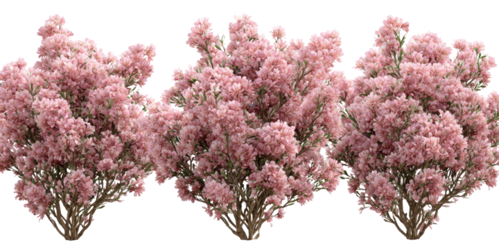 Three Flowering Shrubs with Purple Blooms on Transparent Background