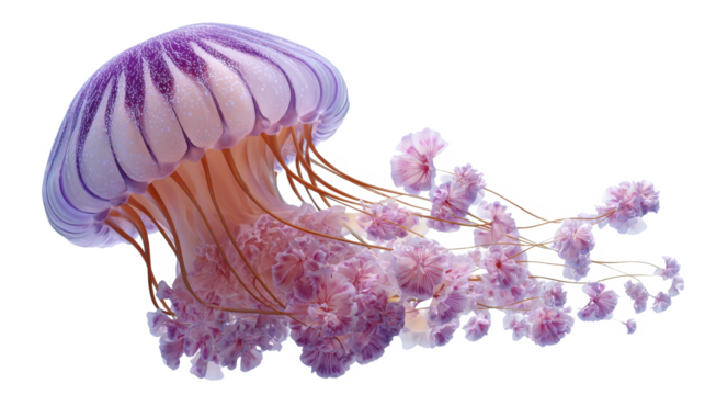 Vibrant Purple and Pink Jellyfish Floating on a Transparent Background PNG Image