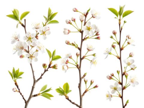 Collection of twelve delicate white jasmine flowers isolated on transparent background. White magnolia flowers isolated on white background.