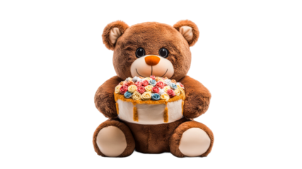 Teddy bear with a colorful cake